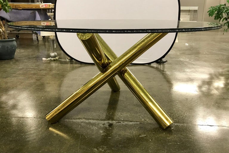 Also a beautiful old brass and red glass table. An elegant and simple form this glass dining table or desk is assembled from a pair of travertine marble clad demilune bases and a beveled edge racetrack shape. Browse our wide selection of expandable dining tables and bring effortless style to your home with beautiful modern furniture and decor. The most common brass glass table material is metal. Shop for glass dining tables in dining tables.